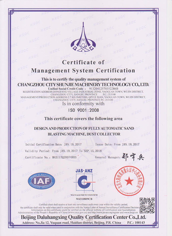 浙江平湖某外資企業,采用自動上下料噴砂機設備,有效減輕勞動強度。...